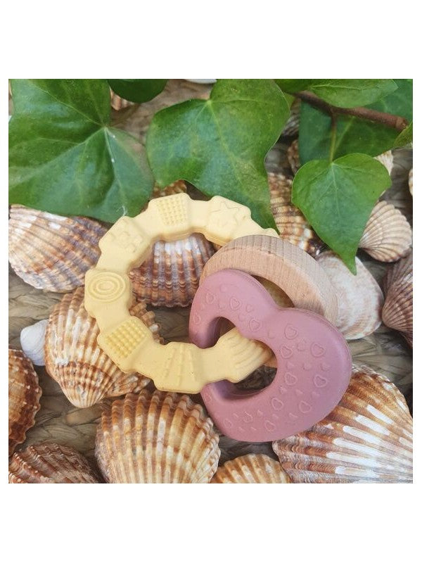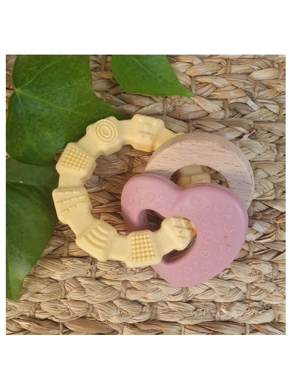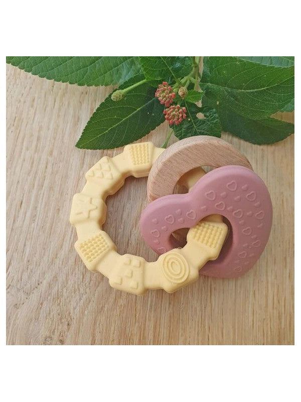 Anneau de dentition en silicone et bois facile à saisir, secouer et mâcher par bébé.