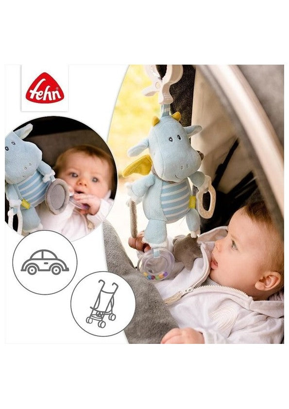 Amusant à jouer, que ce soit à la maison ou en déplacement : grâce à la pince pratique, le jouet d'activité dragon peut être fixé à une poussette, un siège bébé ou un lit.