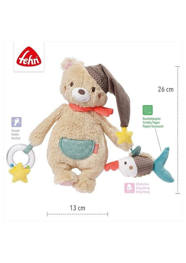 Les différentes options de jeu assurent la bonne humeur partout : des cloches, du papier bruissant, des anneaux de hochet et un mélange de matériaux stimulent la curiosité et conservent le sens de la préhension et du toucher ainsi que la motricité fine du bébé - faisant de l'ours en peluche le meilleur ami de bébé. avec papier bruissant, anneau de hochet, clochette et mélange de matériaux. Pour bébés et jeunes enfants à partir de 0 mois. Matériau extérieur : peluche, velours, tissu imprimé. Rembourrage : 100 % polyester. Idéal comme cadeau de naissance, de baptême ou d'anniversaire pour bébés et jeunes enfants.