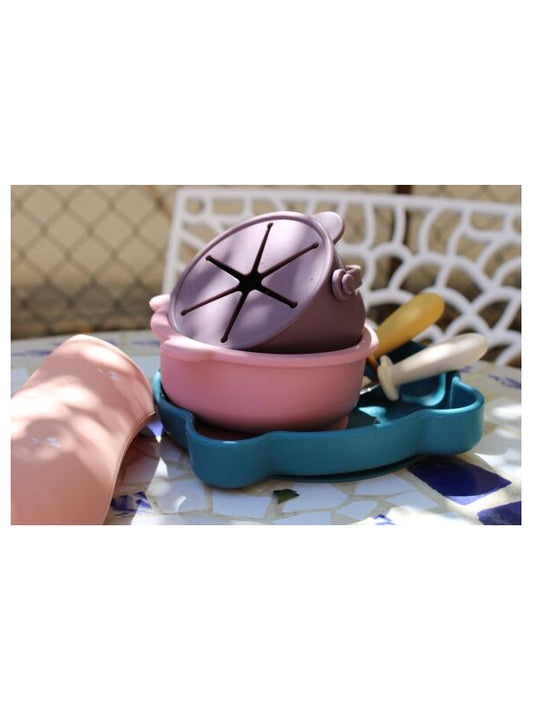 Assiette ourson à ventouse en silicone - Bleu nuit